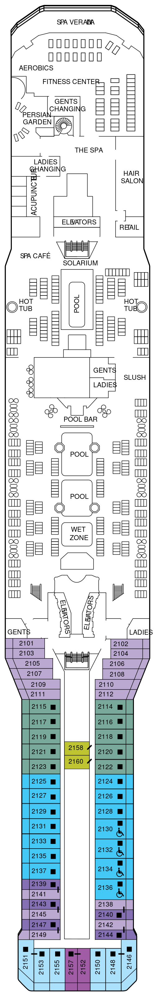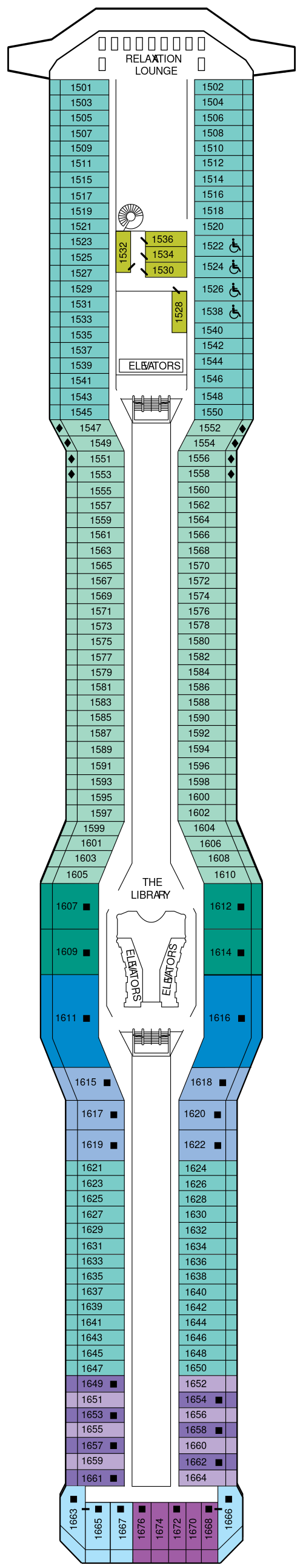 12万トンというスケールを活かした、解放感溢れる施設が満載です。本物の天然芝を敷き詰めたオープンデッキ「ローンクラブ」や、世界最大規模のスパなど、日常の喧騒から離れた贅沢な時間をたっぷりとご堪能ください。