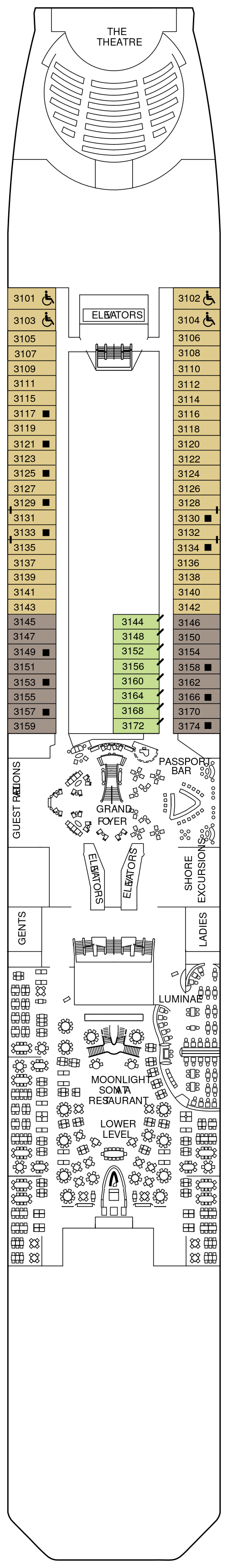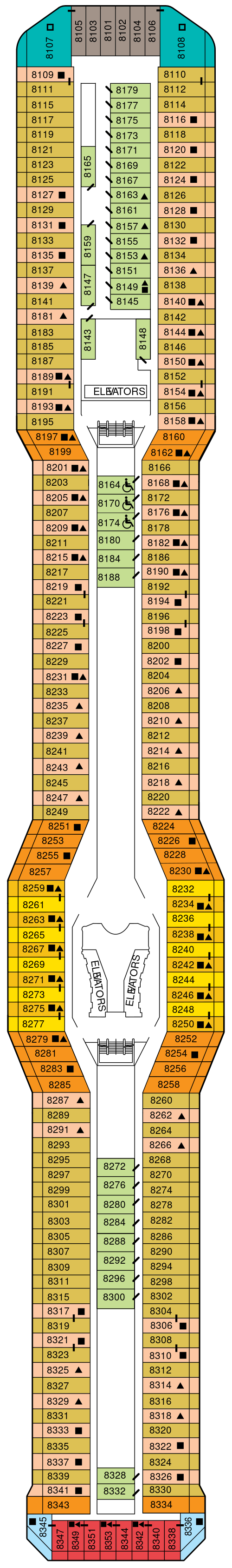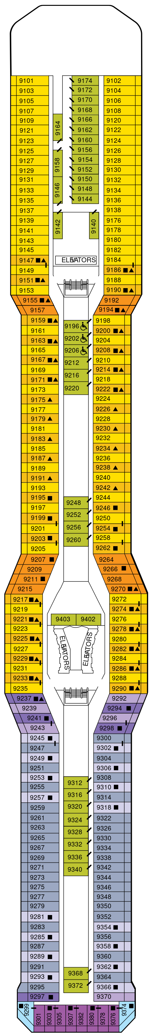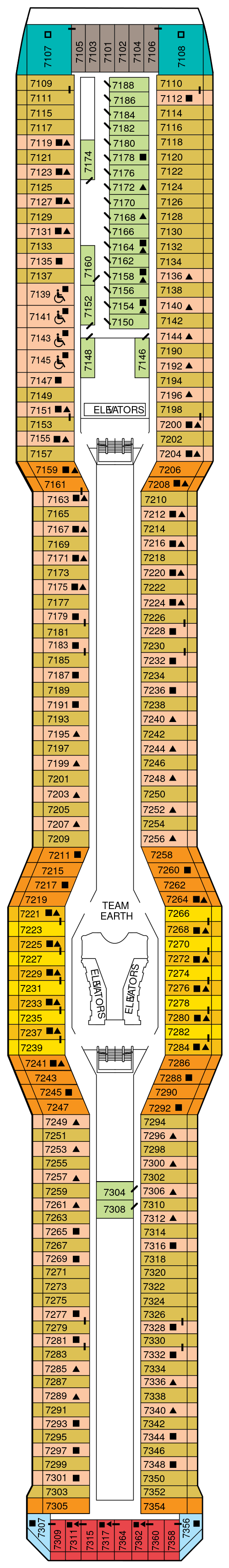 総トン数:122,000トン|乗客定員:2850人|乗組員数:1246人|全長:317m|全幅:37m|喫水:8.2m|巡航速度:24.0ノット|就航年:2010年4月|改装年:2015年4月