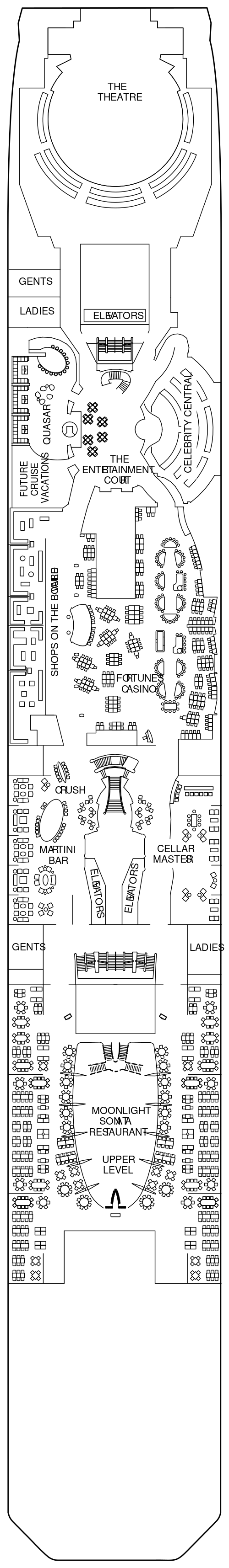 毎夜日替わりで本格的なショーが繰り広げられ、1度きりではなく毎夜足を運んで本格的なエンターテインメントをお楽しみいただけます。厳しいオーディションで選び抜かれたセレブリティ社のエンターテインメントのスタッフによる歌と踊りのプロダクションショーは圧巻です。